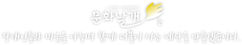 문화날개는 장애인과 비장애인이 편견과 차별 없이 다 함께 더불어 사는 행복한 세상을 꿈꾸며,